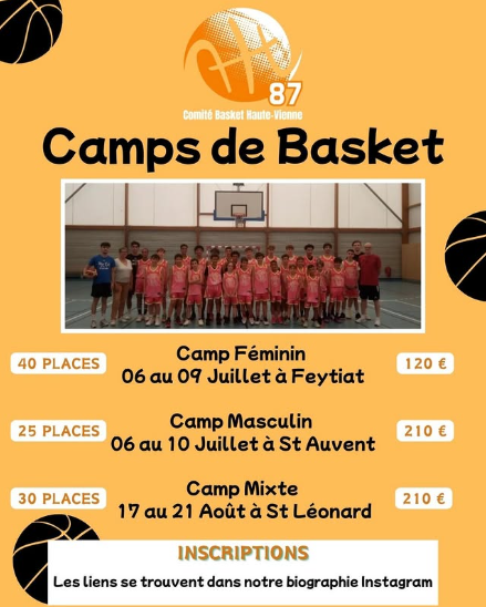 ➡️ Camp Mixte du 17 au 21 août 2026 à Saint Léonard lour les filles et les garçons entre 9 et 15 ans (U9 à U15)